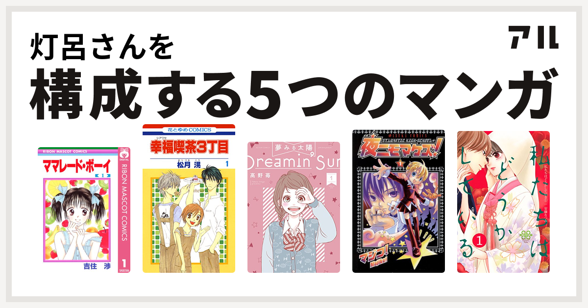 灯呂さんを構成するマンガはママレード ボーイ 幸福喫茶3丁目 夢みる太陽 夜ニモマケズ 私たちはどうかしている 私を構成する5つのマンガ アル